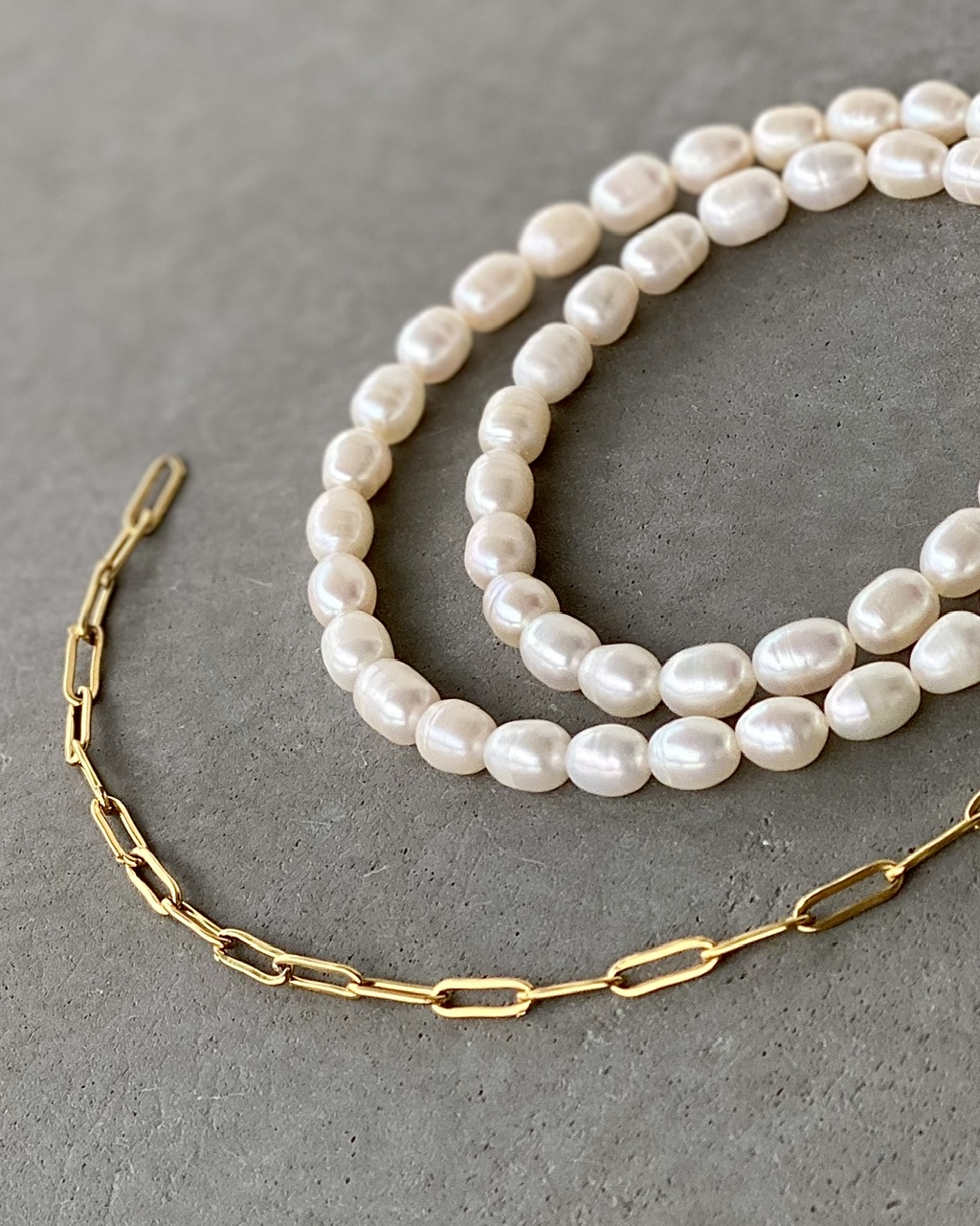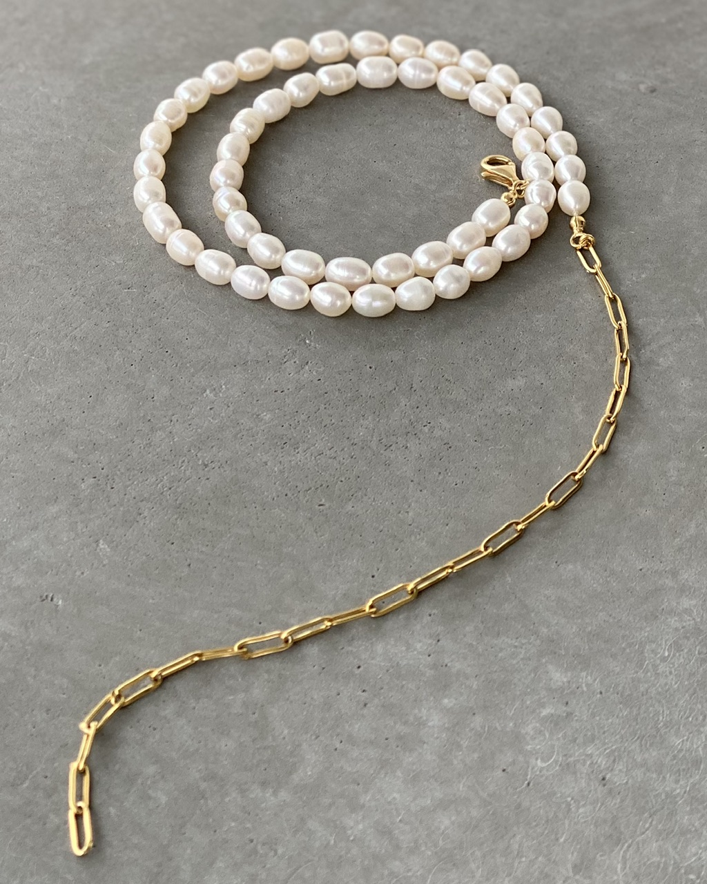 Naszyjnik Classic Long to połączenie naturalnych pereł i łańcuszka o spłaszczonym splocie.