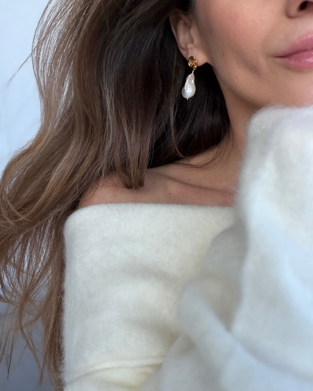 Kolczyki z naturalnymi perłami o nieregularnym kształcie, zakończone subtelnym motywem róży. Połączenie barokowej perły z delikatnym detalem nadaje im wyjątkowego, romantycznego charakteru. Idealne na specjalne okazje, ale także jako stylowy akcent do codziennych stylizacji. Ponadczasowa biżuteria dla miłośniczek naturalnego piękna.