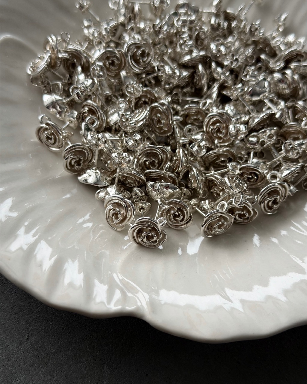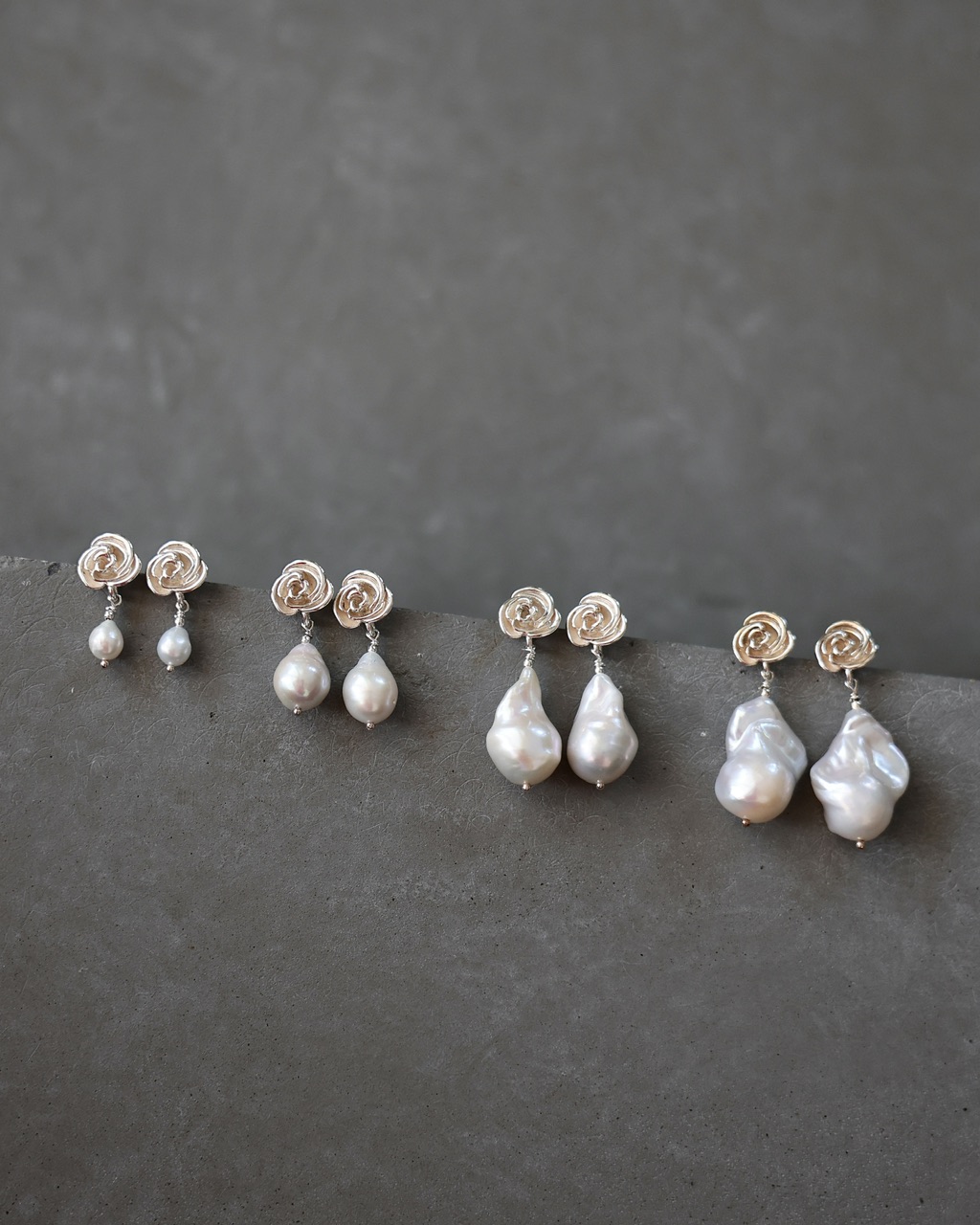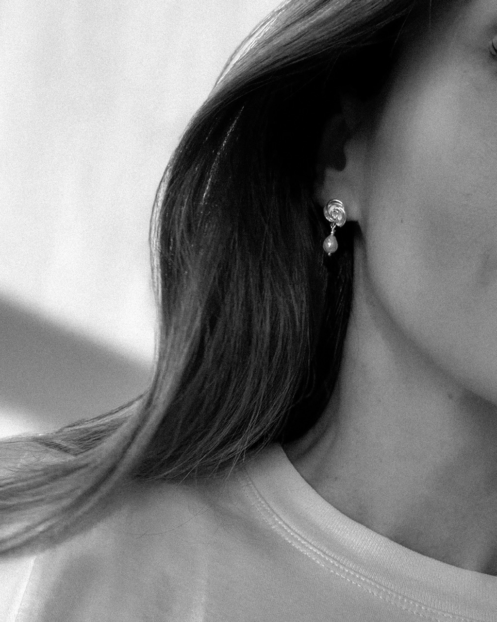 Kolczyki z naturalnymi perłami o lekko nieregularnym kształcie, zakończone subtelnym motywem róży. Połączenie małej perełki z delikatnym detalem nadaje im wyjątkowego, romantycznego charakteru. Idealne na specjalne okazje, ale także jako stylowy akcent do codziennych stylizacji. Ponadczasowa biżuteria dla miłośniczek naturalnego piękna.