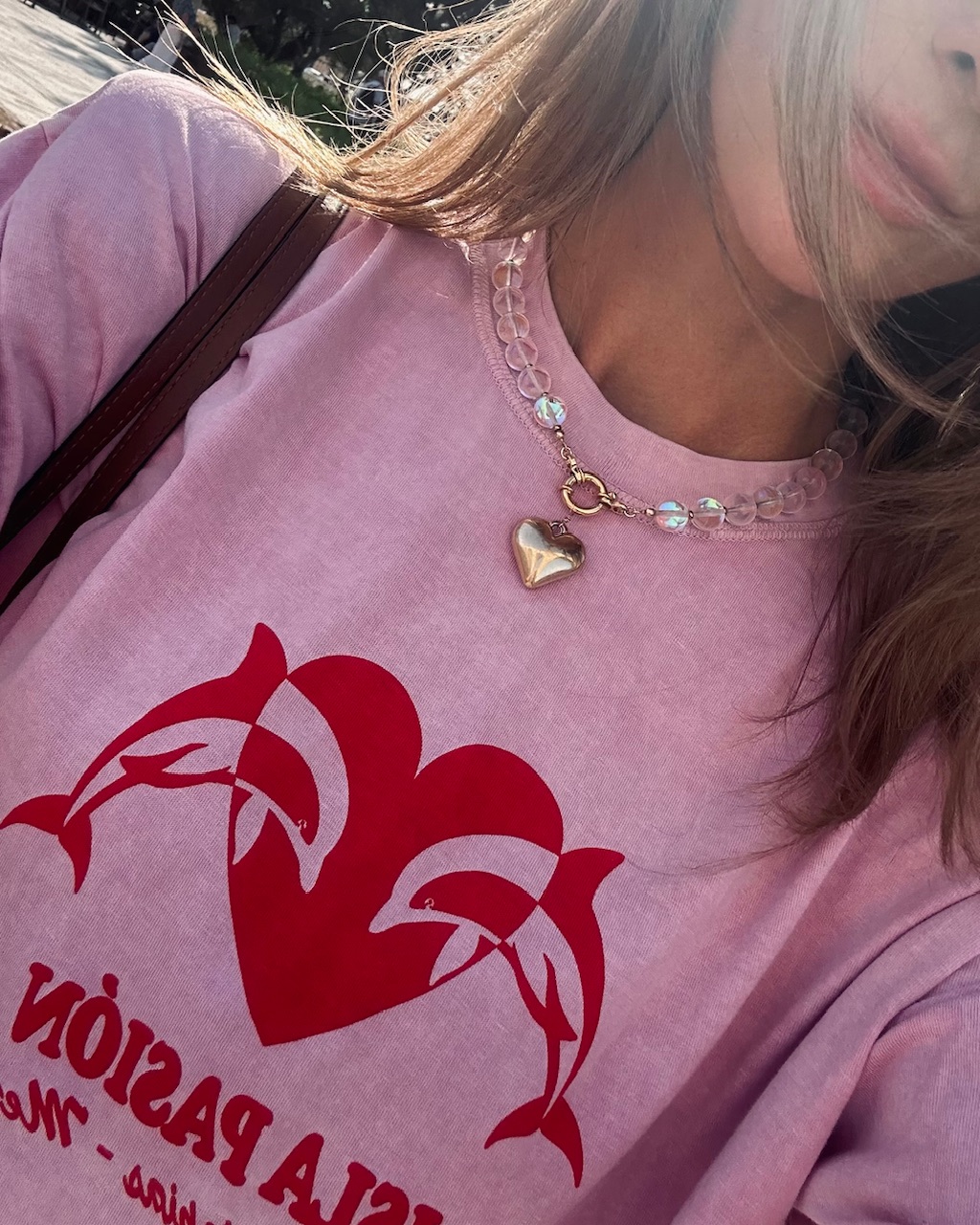 Naszyjnik wykonany z różowych cyrkonii i hematytu zakończony ozdobnym zapięciem z odpinaną zawieszką w kształcie serca. Idealny do letnich stylizacji jak i do jesiennego swetra. Pięknie wygląda samoistnie i w połączeniu z inną biżuterią.