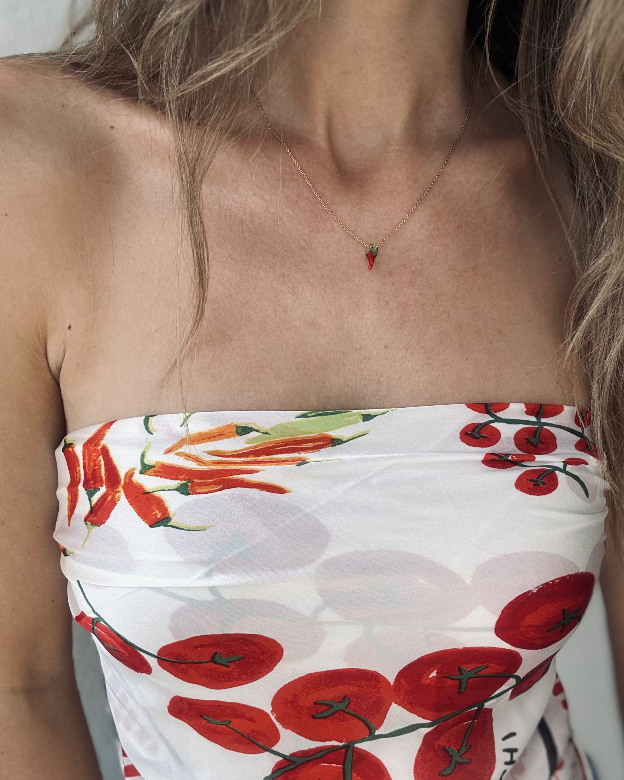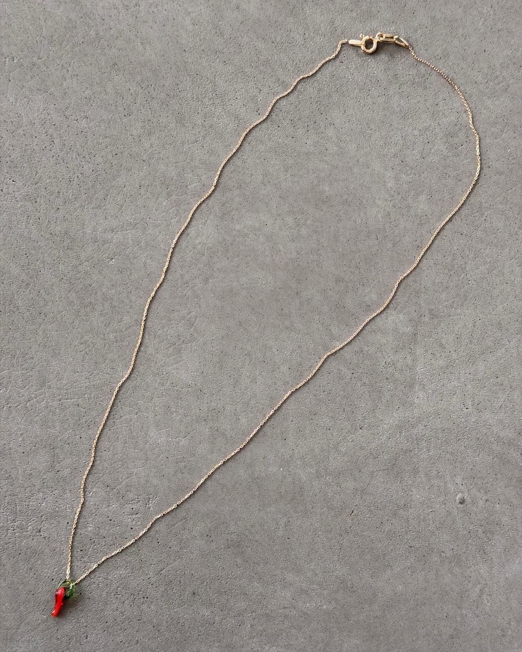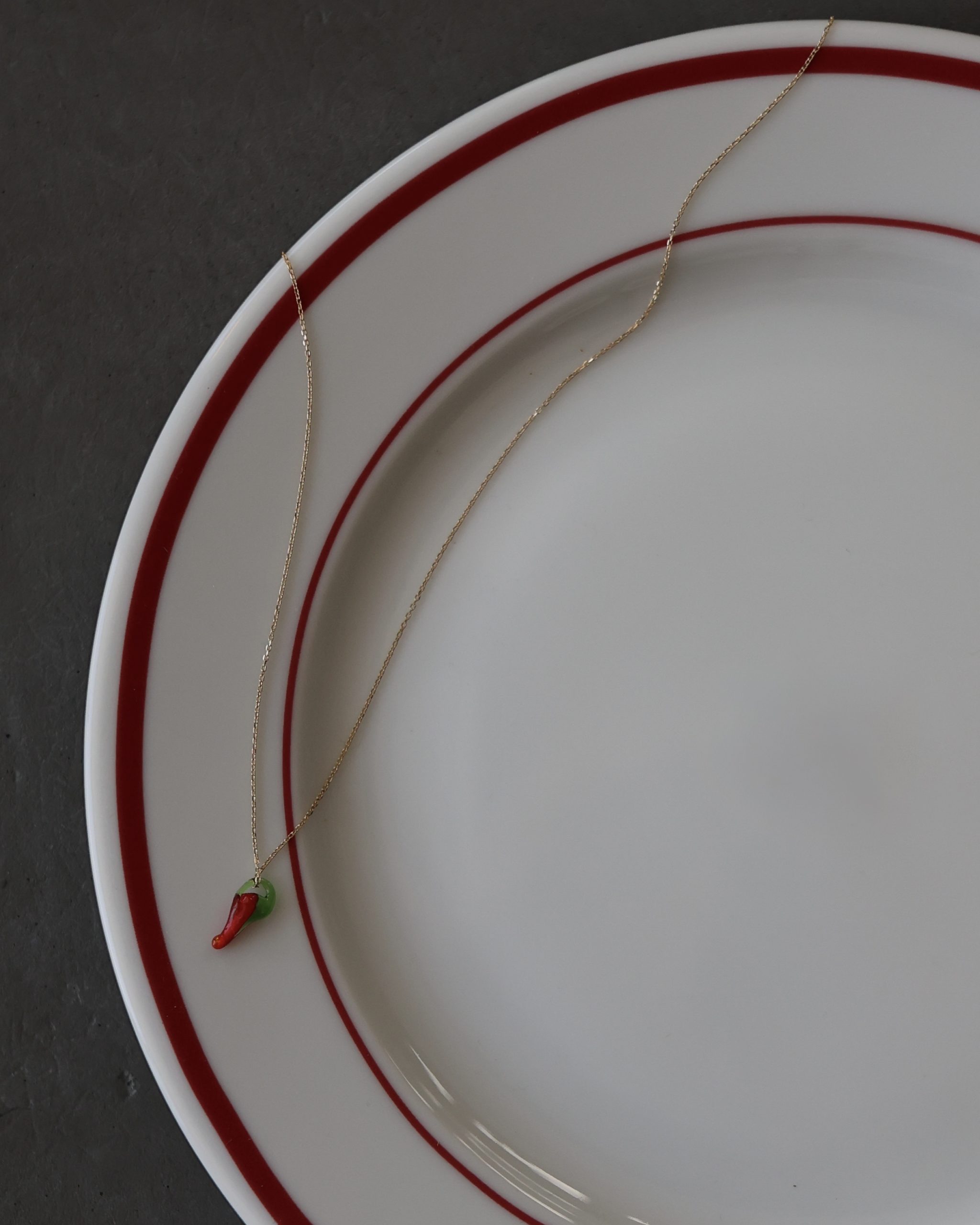 Delikatny i oryginalny naszyjnik z papryczką, który łączy klasyczną elegancję złota z odważnym kolorowym akcentem.