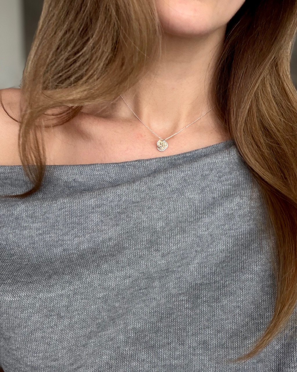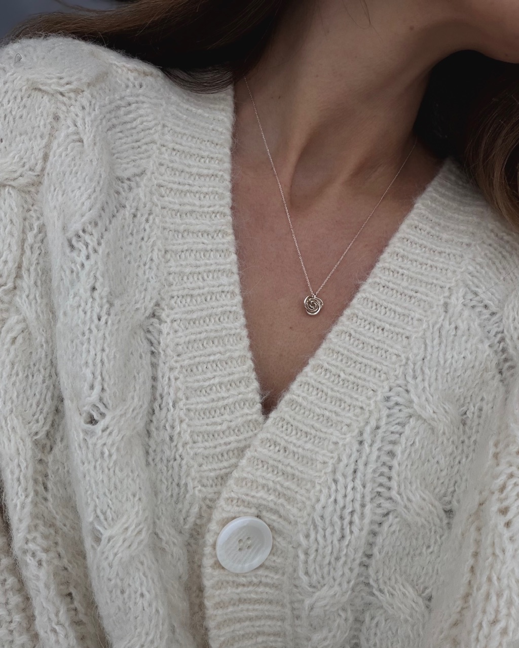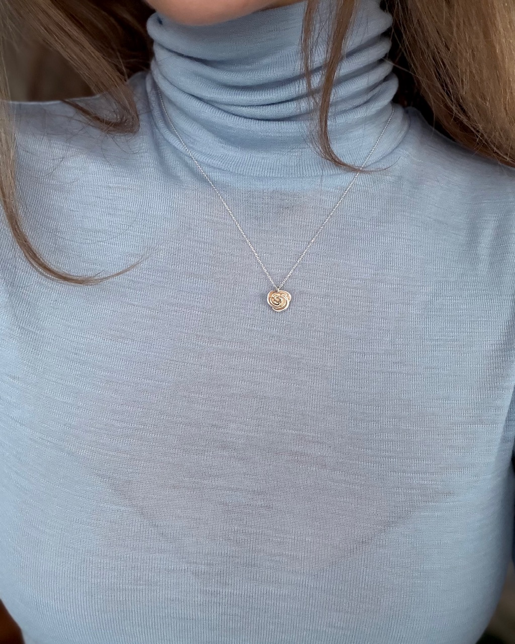 Delikatny naszyjnik na cienkim łańcuszku, ozdobiony subtelną zawieszką w kształcie róży. Minimalistyczny design sprawia, że idealnie pasuje zarówno do codziennych stylizacji, jak i eleganckich okazji. Ponadczasowy dodatek, który podkreśli kobiecy styl i doda uroku każdemu outfitowi.